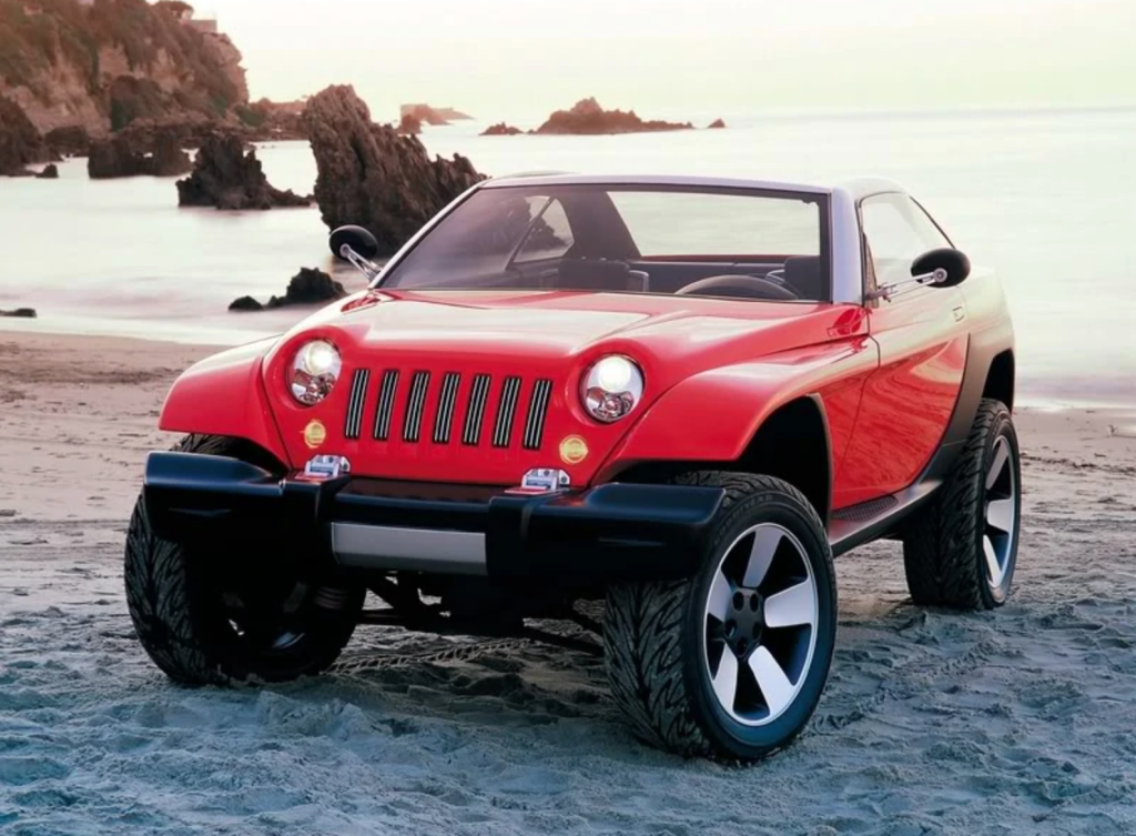 The Jeepster name was used again for a great little concept back in 1998. It was a cross between a stylish Jeep and sporty coupe. It had an experimental adjustable electronic suspension for an all-around utility vehicle; lower for city driving and lifted for off-road use.