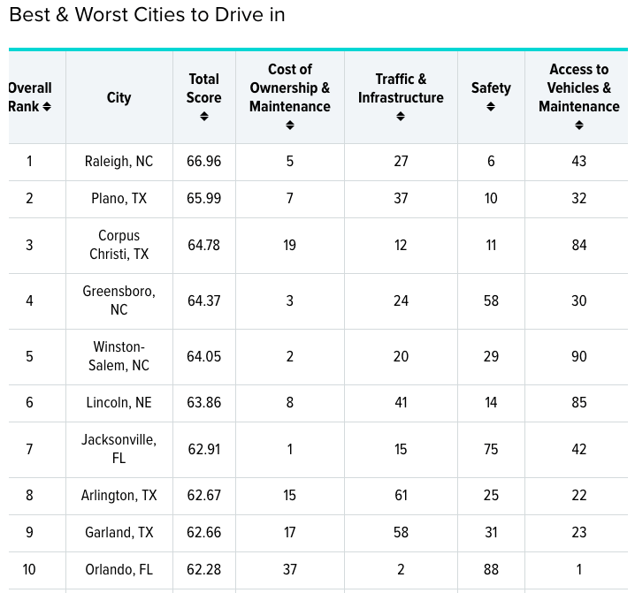 Now, are you surprised? Maybe, considering a few of the top cities may not be what you originally pictured. However, it’s important to take into account that these top 10 cities are smaller and less populated than the worse cities to drive in.