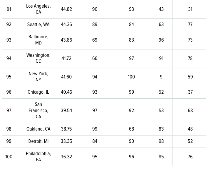 Let’s take a closer look at how WalletHub scored each city. Wallethub assigned a point value to each metric on a 100-point scale. Here are the metrics for each category: