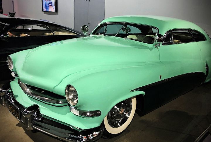 The 1951 Mercury that George Barris customized for Bob Hirohata defined postwar rod culture. He chopped the top, smoothed the body, and applied shimmering paint that electrified the scene in 1953. Vintage posters of the aerodynamic flow of this masterpiece are found on the walls of many vintage car lovers.