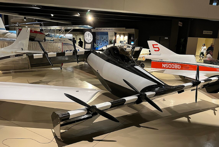 The maker behind BlackFly, Opener, imagines personal, eco-friendly aviation for everyone. The aircraft requires no runway and features single-seat electric flight, which gives users freedom in open fields or backyards. This unique concept sparks excitement about the possibility of personal flight for everyday people.