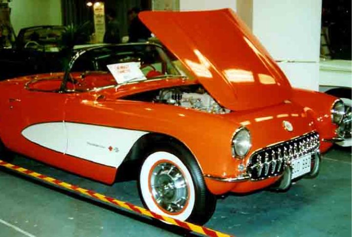 Chevrolet released the 1953 Corvette as America’s first mass-produced sports car. It showcased a fiberglass body—a pioneering choice then—a 3.9-liter Blue Flame inline-six engine and a two-speed Powerglide automatic transmission. The Corvette’s suspension system included independent front suspension having coil springs and a solid rear axle with leaf springs. The interior had two seats upholstered in red vinyl, while the dashboard featured a tachometer and other gauges.
