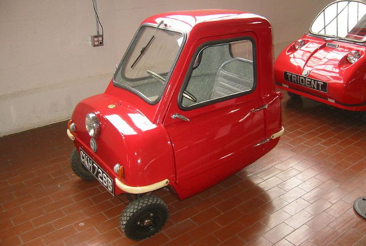 This Italian microcar became the first mass-produced one. In 1955, it became the top-selling single-cylinder vehicle, with more than 161,000 cars sold. The vehicle nicknamed the “bubble car,” featured a combination of compact efficiency and quirky design. The Isetta’s standout feature was its unconventional front door, which doubled as the entire front end, swinging outwards to grant access to the cabin.
