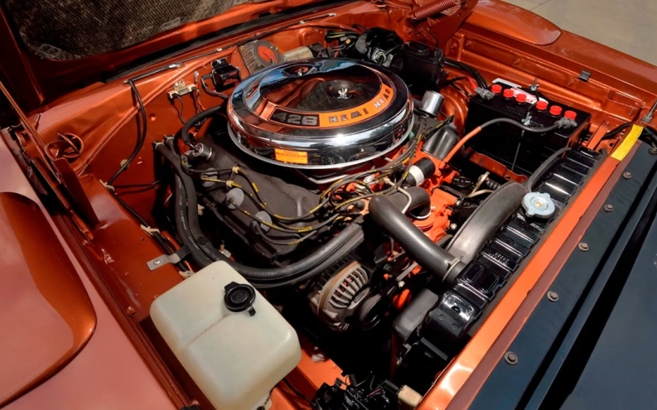 This one, painted T5 Copper Metallic, featured a white wing and tan interior, which was not a particularly popular color in its day. But what makes it rare, besides the limited production and paint, is the powertrain. This example came with the coveted 426 Hemi engine.