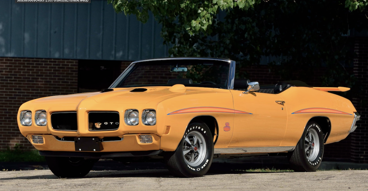 Both exhibit the outlandish features from this era, what with the GTO’s Judge graphics and the Daytona’s humorous beak and towel rack. But the prices they’re selling for are no laughing matter. The Judge sold for a cool $1.1 million, while the Daytona bested it with a selling price of $1.43 million. We’ll take a look at the Judge first, to partially explain its desirability.