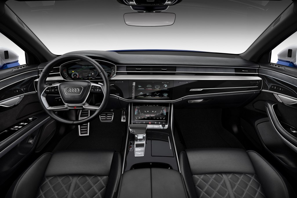 Inside the S8 are standard diamond-stitched seats with ventilation, massaging, and inflatable-bolster functions. Carbon trim inlay that has a special 3D effect and matte aluminum add subtle finishes to the interior.