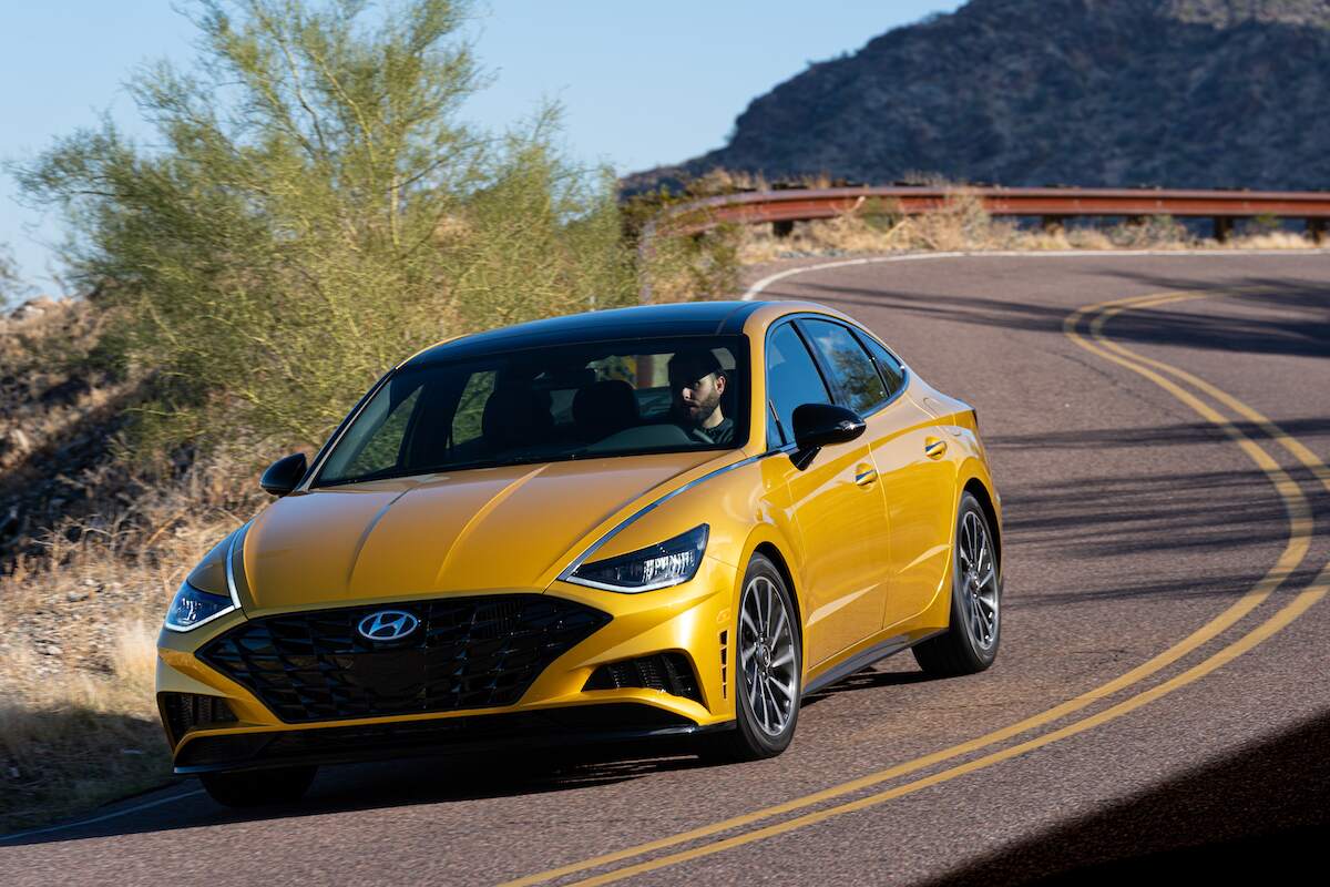 The 2020 Sonata has seven trims, including the hybrid versions. They’re the SE, SEL, SEL Plus, Blue Hybrid, SEL Hybrid, Limited, and Limited Hybrid. U.S. News recommends the SEL for its balance of affordability and appealing features, such as dual-zone climate control, blind-spot monitoring system, and heated front seats. Average used prices for a 2020 Hyundai Sonata are between $18,455 and $26,392, per J.D. Power.