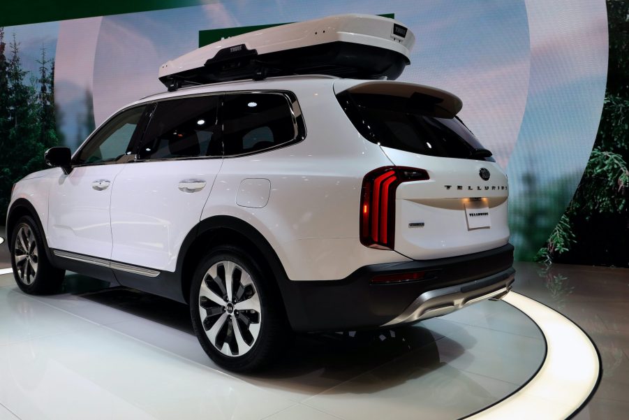 Kia loaded this SUV with plenty of safety tech as standard equipment. The third-row seat isn’t quite as roomy as others in the class, plus it also doesn’t offer any entertainment for rear passengers. Some of the interior isn’t as impressive as you’d hope, especially the glove box, which AutoTrader called an “afterthought.”