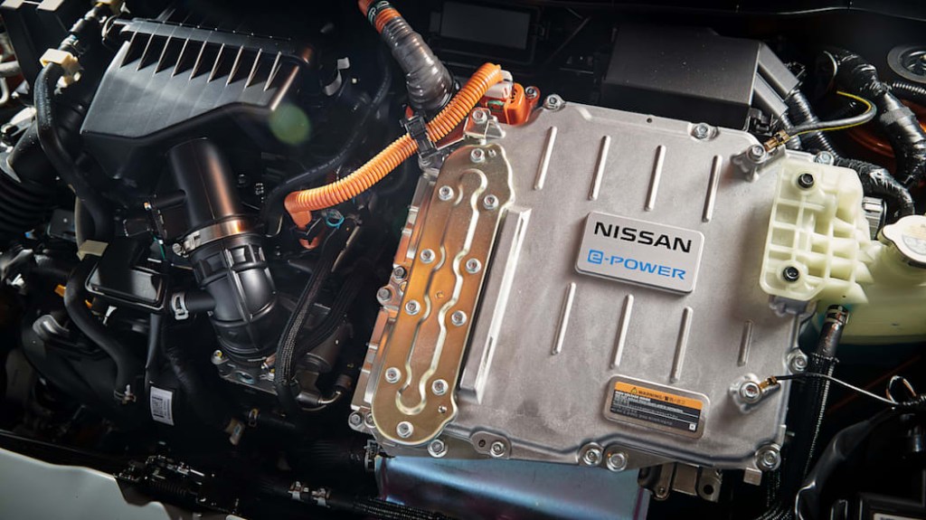 Thailand and Japan get e-Power in their Kicks. It utilizes a 1.2-liter, 12-valve, three-cylinder engine for starters. The engine powers an electric-drive system that sends juice to the battery. So it’s like a non-plug-in EV. It’s a 1.57 kWh lithium-ion battery spinning an electric motor, generator, and inverter. It adds up to 127 hp and 191 lb-ft of torque. The electric motor can get power from either the engine or battery or both under a load.