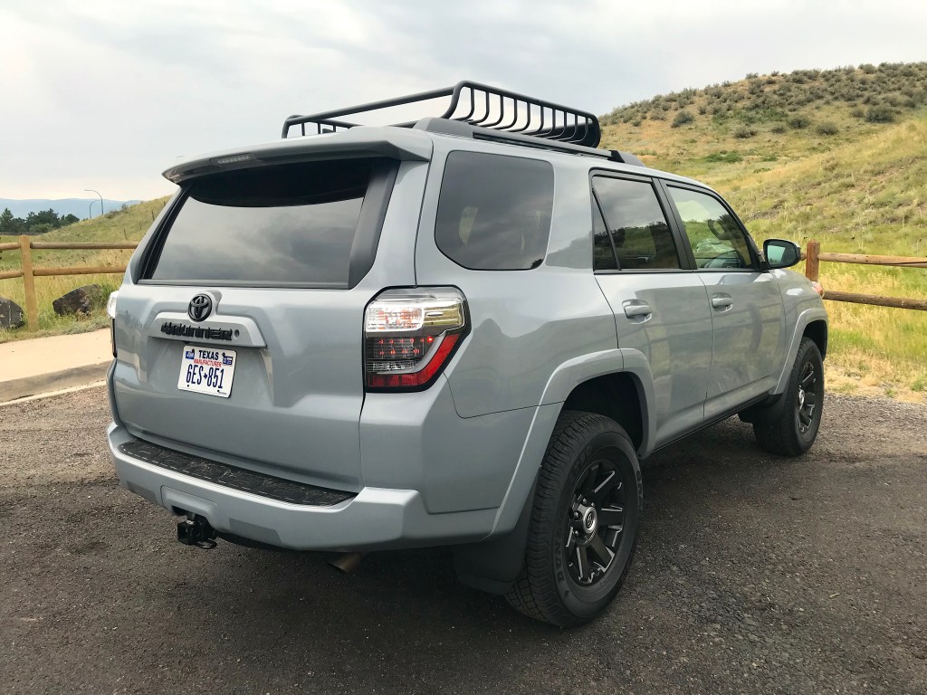My tester was the new-for-2021 Trail Edition, which is only going to be limited to 4,000 units according to Toyota. It’s essentially a dressed-up SR5 model with 17-inch dark gray wheels, a Yakima roof rack, and a 40-quart cooler. The one that I tested was dressed in Cement gray, however, Army Green, white, and black are also available.