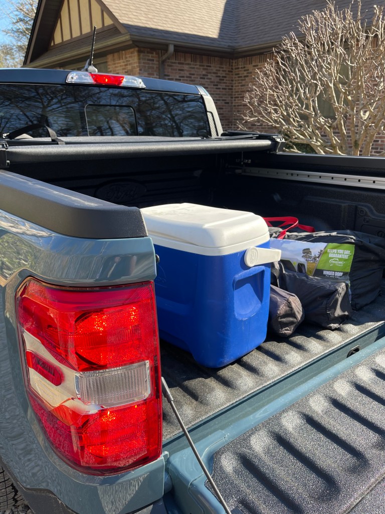 The Maverick has a four-foot six-inch cargo bed with a measured box volume of 26.9 cubic feet. The bed can hold up to 18 sheets of 4×8-foot three-quarter-inch plywood sheets without the need to load them at an angle.