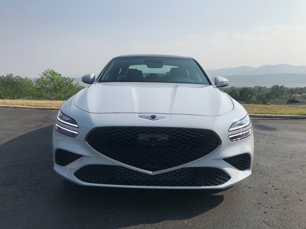 Take one look at the Genesis G70 and you would be hard-pressed to compare it to almost anything else on the road. It has a unique look that I think is very sophisticated and not overdone. For the 2022 model year, the G70 was given styling updates, particularly in the front and rear of the car. The front grille is more V-shaped than before and it’s joined by two air vents that are only semi-fake.