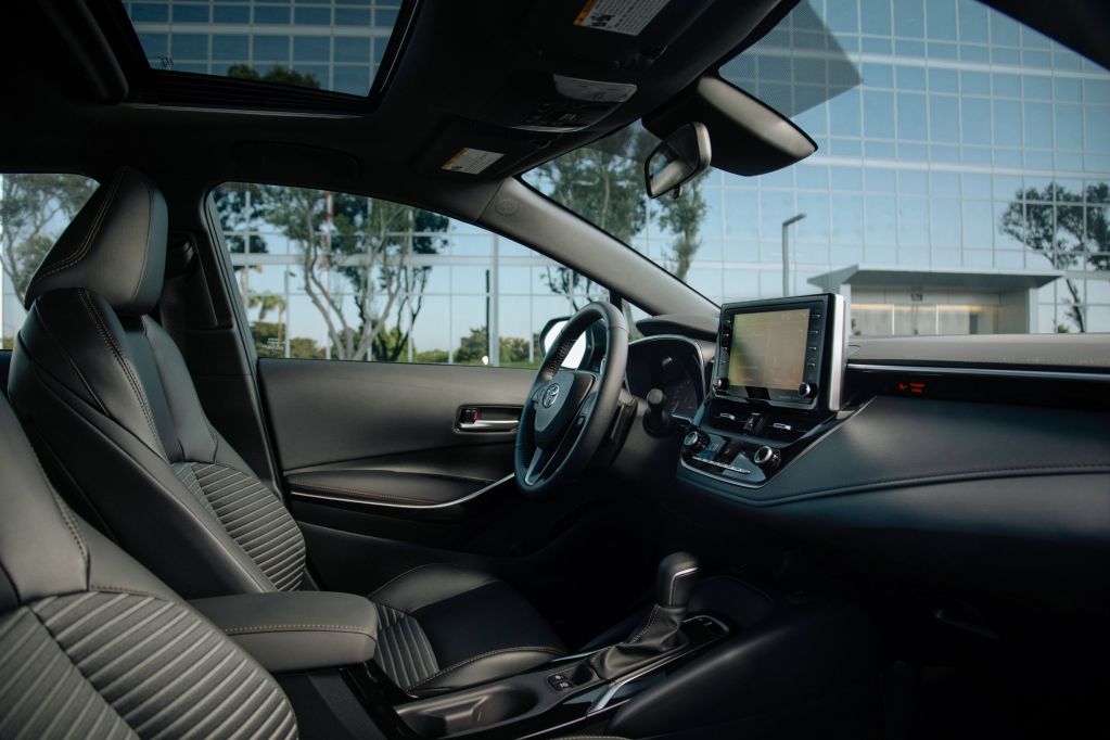 Trim-wise, the 2021 Toyota Corolla SE Apex sits roughly in the middle of the Corolla lineup. That means its standard features include keyless entry, an 8” center touchscreen, Apple CarPlay, Android Auto, and the Toyota Safety Sense 2.0 ADAS suite. Said ADAS suite includes adaptive cruise control, lane-keeping assist, and forward-collision warning with automatic emergency braking. However, the Corolla SE Apex doesn’t offer blind-spot monitoring, not even as an option.