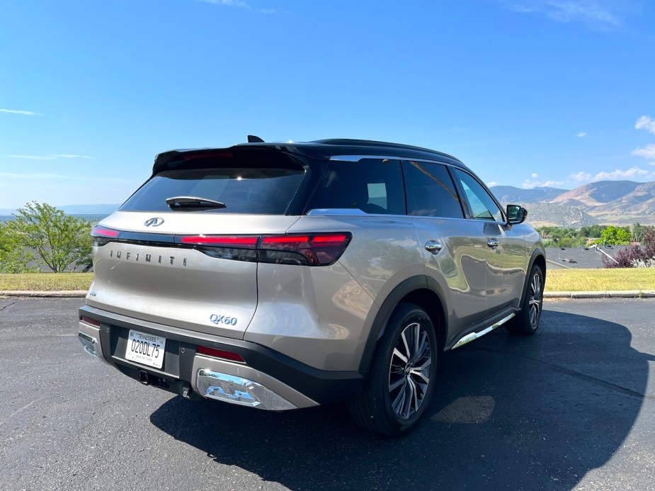 The Infiniti QX60 feels smooth when you sit in it and just as smooth when you drive it. Under the hood is a 3.5-liter V6 that generates 295 hp and 270 lb-ft of torque. The engine revs smoothly through the RPM range, and the nine-speed automatic shifts very well. There are even paddle shifters behind the steering wheel, which change the gears quickly, but I can’t imagine anyone would use them much.