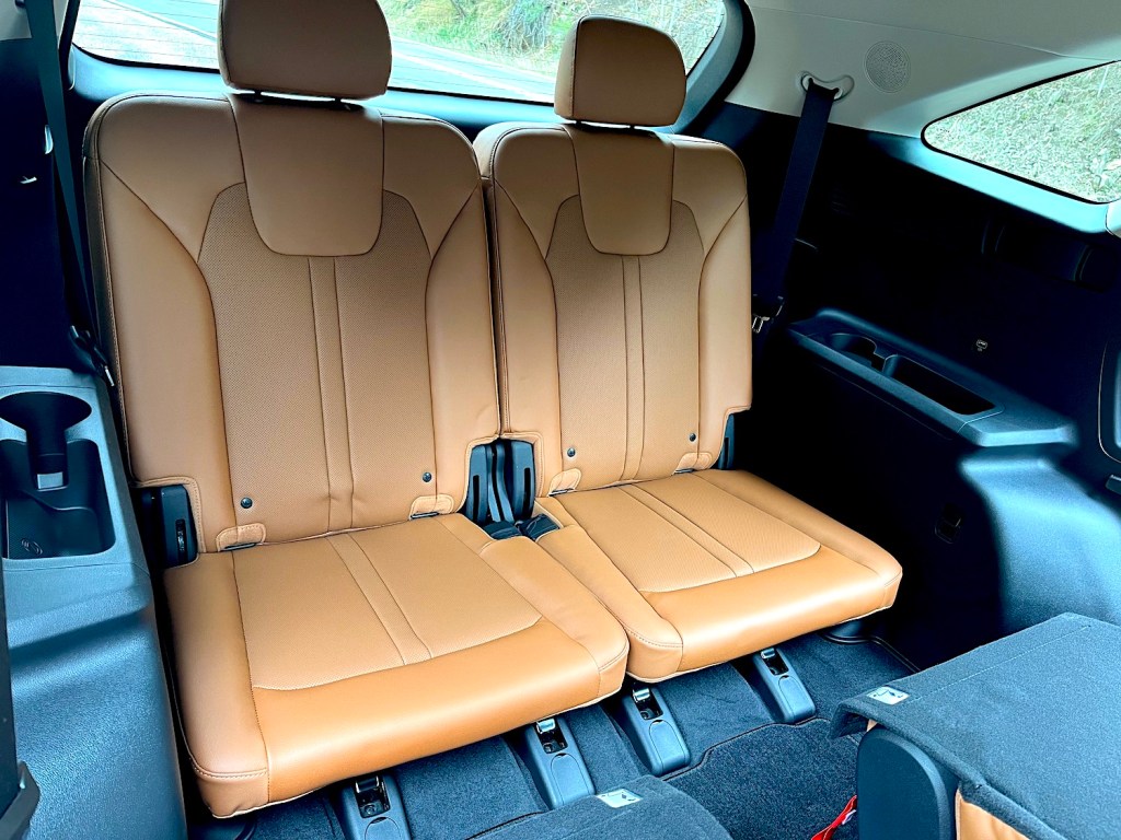 There’s plenty of room upfront and for the second-row occupants. However, the third row is rather cramped for adults, so I would only recommend it for smaller occupants or short trips. One neat addition is that Kia added a cupholder, a charging port, and vents for the third row, which you normally don’t see in an SUV.