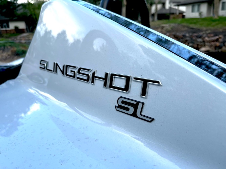 It’s worth the wait, though, as the engine sings well at the upper rev range, and the rear wheel steps out a little around corners. Speaking of the rear wheel, it’s wrapped in Kenda rubber and is sized 20×9. That large wheel does well when it comes to stabilizing the Slingshot, and it has plenty of grip to lay the power down. So much so that I sometimes forget that there’s only one wheel back there.