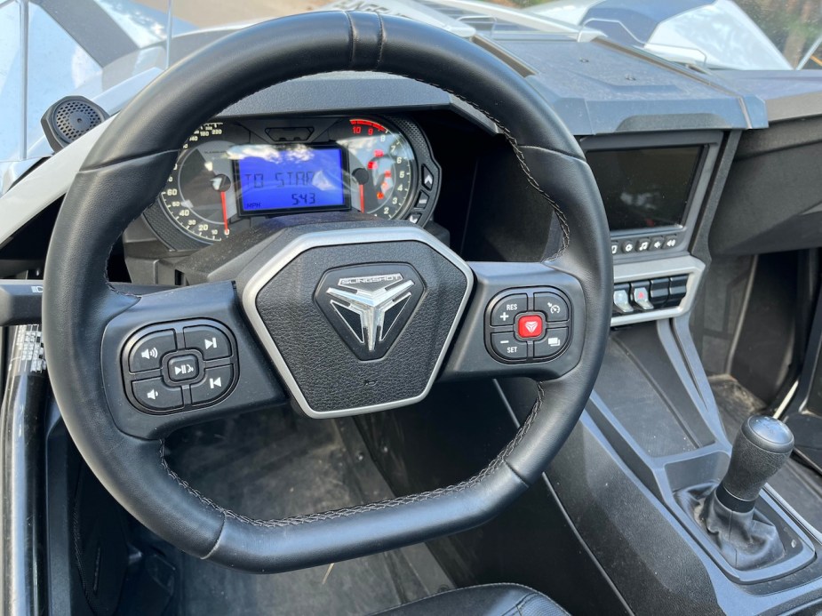 Not really. Under its long hood is a 2.0-liter, four-cylinder engine that produces 178 hp and 120 lb-ft of torque. My tester is equipped with a five-speed manual transmission that shifts smoothly and operates loudly. From a dead stop, the Slingshot is quick off the line, but to get it going anywhere quickly, you have to floor it up to the 8,000-rpm redline.