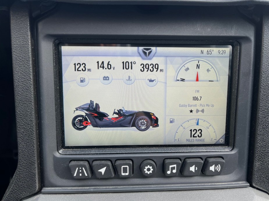My tester was a Slingshot SL model with a five-speed manual transmission. It also came with the 7-inch Ride Command touchscreen interface, a USB port, and a Rockford Fosgate premium audio system.
