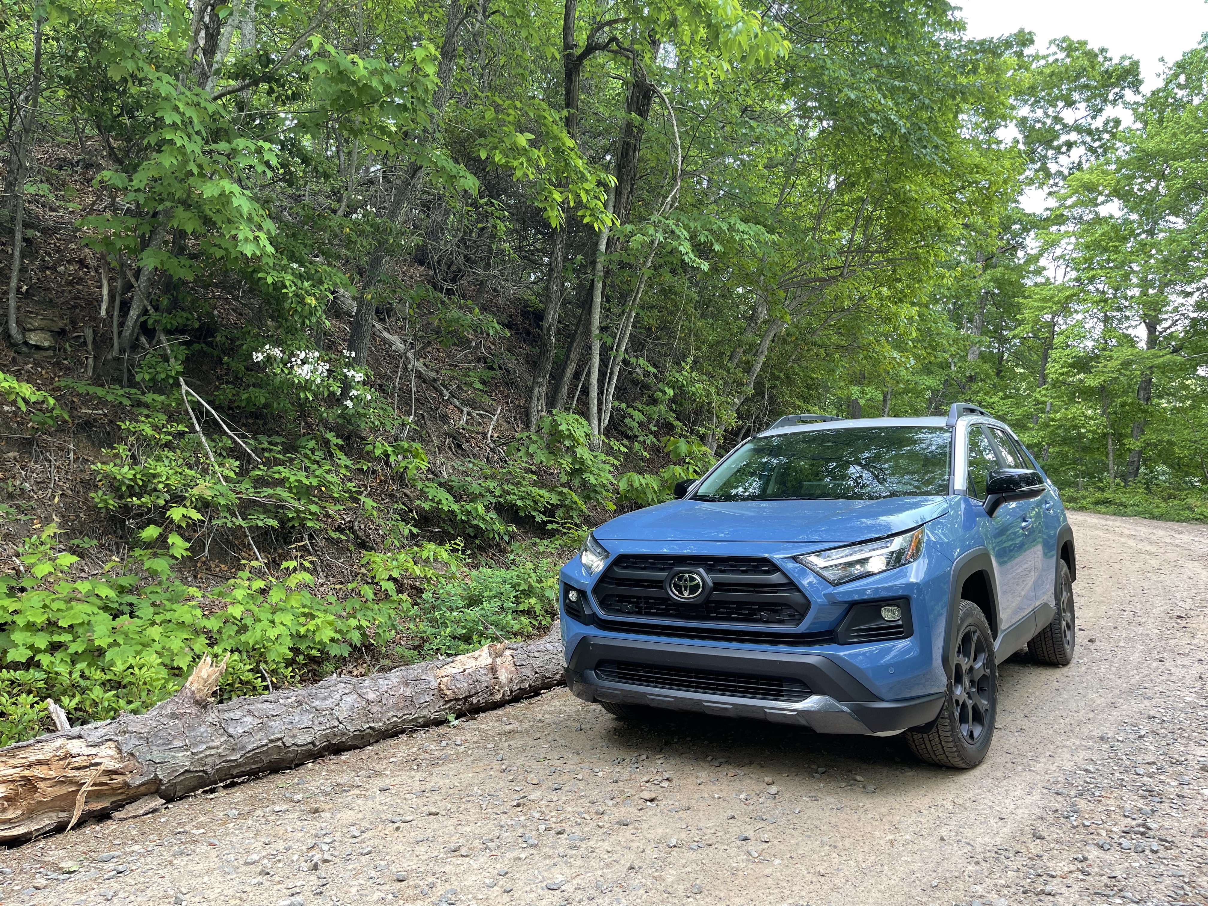 We took the 2022 Toyota RAV4 TRD Off-Road into the Pisgah National Forest to find some secluded trails. On the pavement, the RAV4 feels smooth and confident around curves. There is a bit of wind noise, but getting to and from the trails is comfortable.