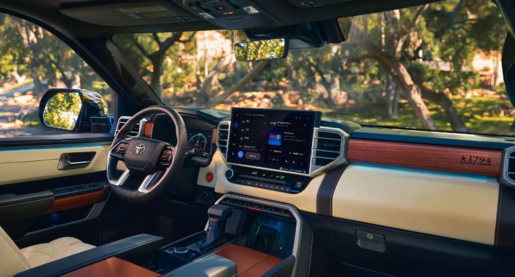 According to Car and Driver, the 2022 Toyota Tundra 1794 Edition features a Saddle Brown or Rich Cream interior with American walnut wood-grain trim. It comes with a chrome grille and exterior accents. The pickup features a trailer backup guide system with Toyota Straight Path Assist to make maneuvering with a trailer easier.