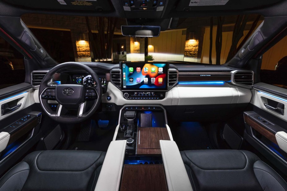 Though the Sequoia has less cargo space than some rivals, it still has 12 cubic feet even with the seats in use. On the technology front, the Sequoia 2023 has a 14-inch touchscreen on all trims besides the base model. This is the same infotainment system used in the Toyota Tundra. Luckily, Toyota replaced the Sequoia’s infotainment system from the previous model.