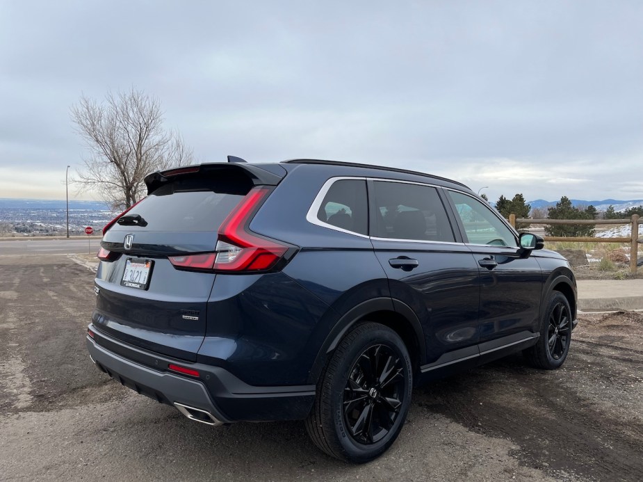 The editors at MotorBiscuit award the 2023 Honda CR-V with an overall rating of 8.7 out of 10. Honda has gone above and beyond with the CR-V this time around, as it exudes near-luxury features and an opulent appeal. Gone are the days of cheap plastics and a loud ride; this new CR-V is a pleasure to drive and provides plenty of comfort, practicality, and fuel efficiency. However, we do wish the hybrid model was a little more efficient.