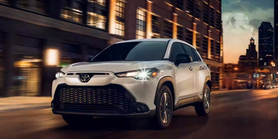 Toyota’s Corolla Cross Hybrid is an affordable subcompact hybrid SUV with great fuel economy. It comes with plenty of standard features that increase its value proposition. Available in three configurations, the Corolla Cross Hybrid has plenty to offer to drivers. Toyota’s new hybrid SUV tops out at $31,065 with the Corolla Cross Hybrid XSE trim. This trim comes standard with a leather-trimmed steering wheel, a leather shift knob, and ambient lighting.