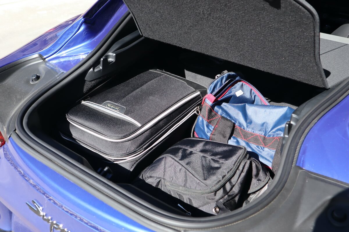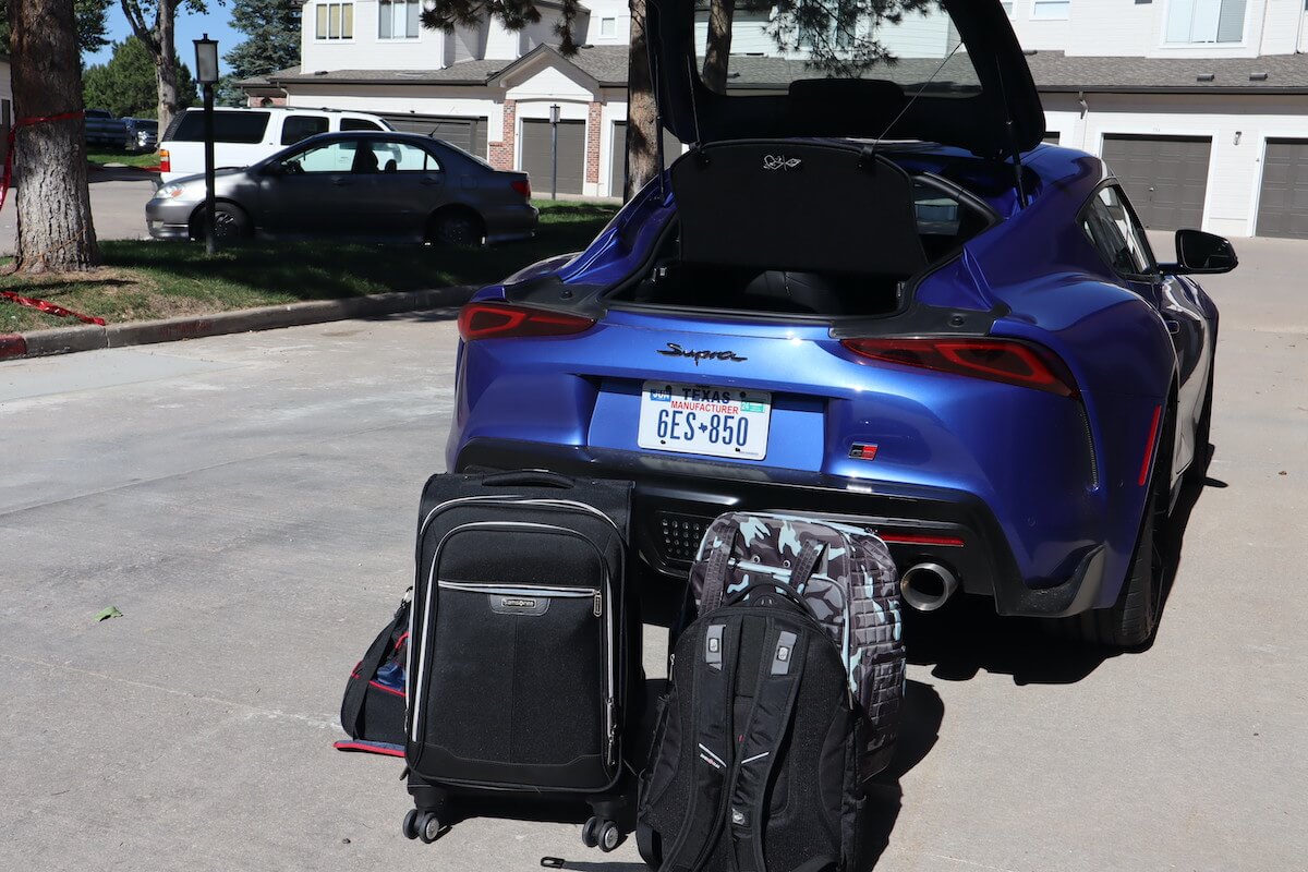 I could neatly fit the suitcase, duffel bag, and backpack in the Supra’s trunk. However, I had to put the roller bag on the passenger seat. Although, I suspect that if I had taken the cargo cover out, I probably could have fit all four bags in, with one resting on the speakers. Either way, it’s safe to say that the Supra is a good car for a weekend road trip – provided no one has a giant suitcase.
