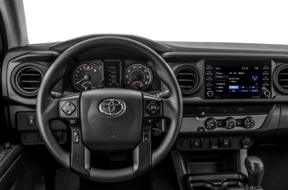 The 2023 Toyota Tacoma has a few modern features but feels basic. A 7.0-inch touchscreen is standard on the SR model, but the other trims get an 8.0-inch unit. The system is easy and works quickly.