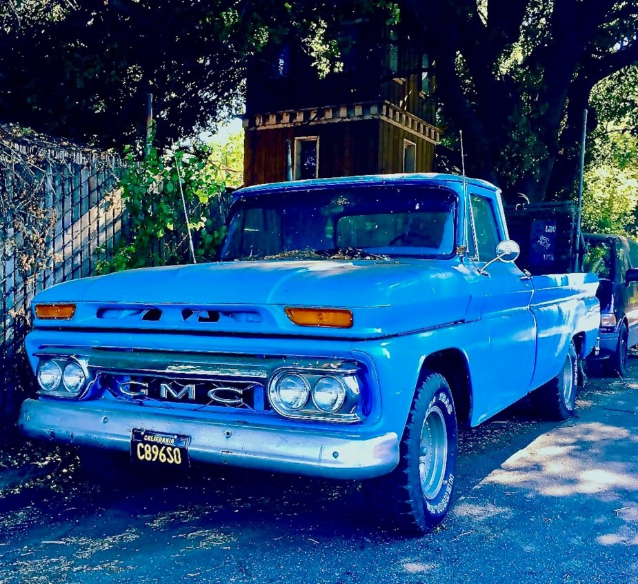 This lovely blue survivor belongs to the first generation of the Chevy/GMC C/K line of pickup trucks. This example is a regular cab with a long bed, marketed as a “fleetside” by GMC. It’s a standard pickup truck bed, but this marketing term simply differentiated it from the budget-friendly “stepside” trucks–according to MotorTrend. It also has some chunky tires that make me wonder if its a “K” series with factory 4WD.