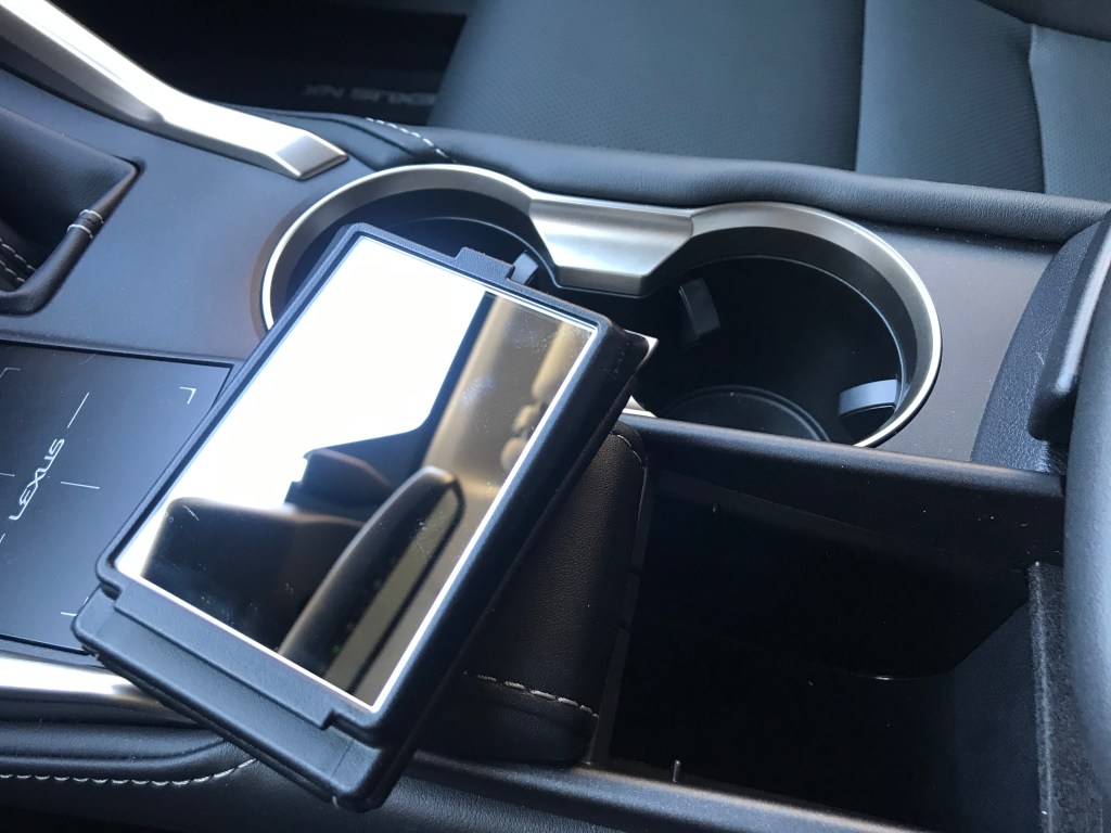 This is perhaps one of the weirdest features we have seen on a car, but if you look to the left of the cupholders on the Lexus NX300h, then you’ll find a small pull tab made of cloth. When you pull on it, it will reveal that it’s connected to a small, leather-backed cover with a mirror on the other side of it. Below that mirror is a tiny cubby hole that’s big enough to store a ring box, or perhaps, some make-up. Whatever it’s for, you can at least use the mirror to make sure that your hair and face are in order while at a stoplight and, if you want to be really discreet, then you can possibly even hide a piece of proposal jewelry for that special someone in your life.