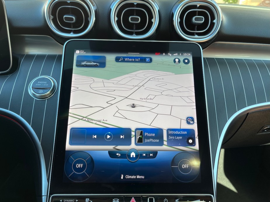 On the bright side, the Mercedes C-Class has many tech features that are easy to use. We admit that the 11.9-inch touchscreen looked intimidating initially, but after poking around the menus, it was pretty intuitive. Additionally, it was easy to change the climate controls and the radio stations. However, we do wish that a volume control knob was present, but we’re just old school like that.