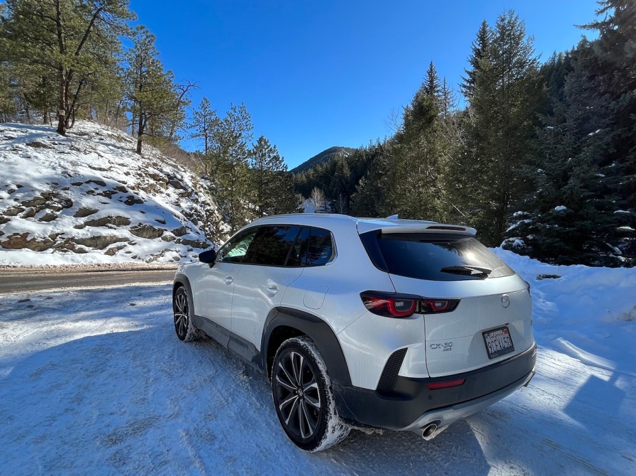 During our time with the Mazda CX-50, we were able to take it on a few snow-covered roads. We weren’t exactly driving in deep snow; however, the CX-50’s i-Activ AWD system did well on the snowy roads we drove on. From a dead stop, the car’s all-season tires gripped the road quickly, which was partly assisted by the all-wheel drive system.