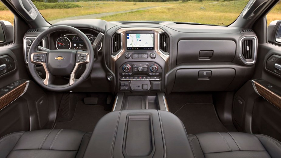 But it’s only available on the LT trim and models above it. The Work Truck, Custom, and Custom Trail Boss models still have the old, outdated interior. It’s filled with hard plastics and other cheap materials.