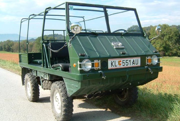 This vehicle, by Steyr-Daimler-Puch, was designed for military logistics. Small and tough, this Steyr-Daimler-Puch goes off-road for fun, starting at $8,000 (prices range from $8,000 to $15,000).