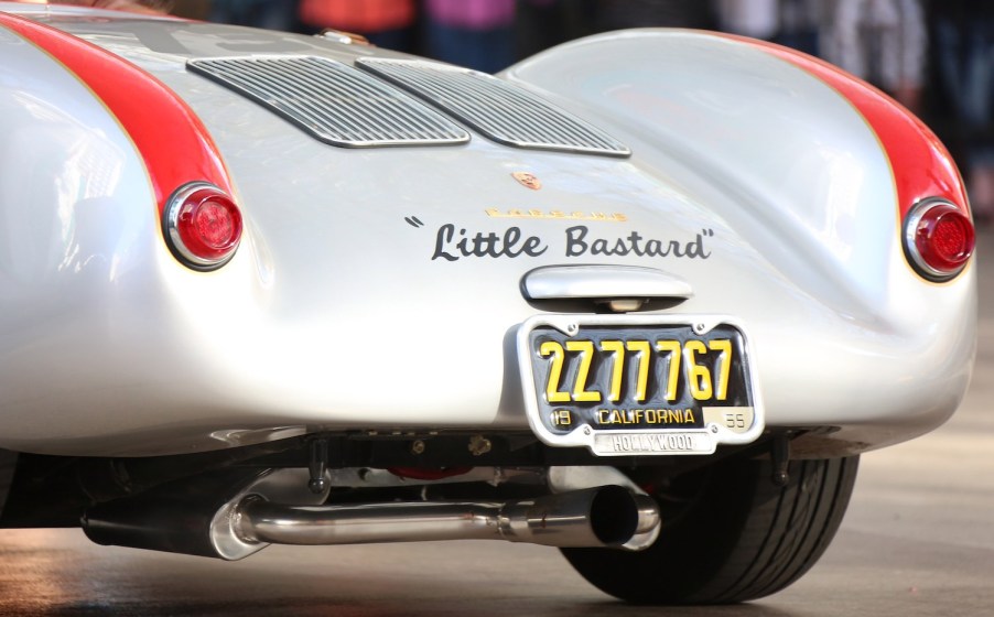 By the time he headlined his third film in 1955, James Dean was an icon of teenage rebellion. In a time when auto racing was a niche sport, he bought a Porsche 550 Spyder and competed. Despite the studio’s protests. The slimy studio president referred to Dean–who was from a broken family and 5’7″–the “Little Bastard” behind his back. So Dean painted “Little Bastard” on his race car.