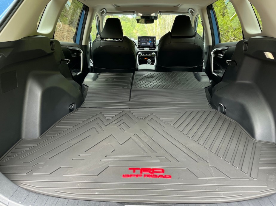 When it comes to cargo room, the Toyota RAV4 provides plenty of space. There are 37.6 cubic feet of space with the rear seatbacks folded up and 69.8 when they’re folded down. In case you’re wondering, that’s enough room to fit a standard-sized mountain bike, which definitely comes in handy.
