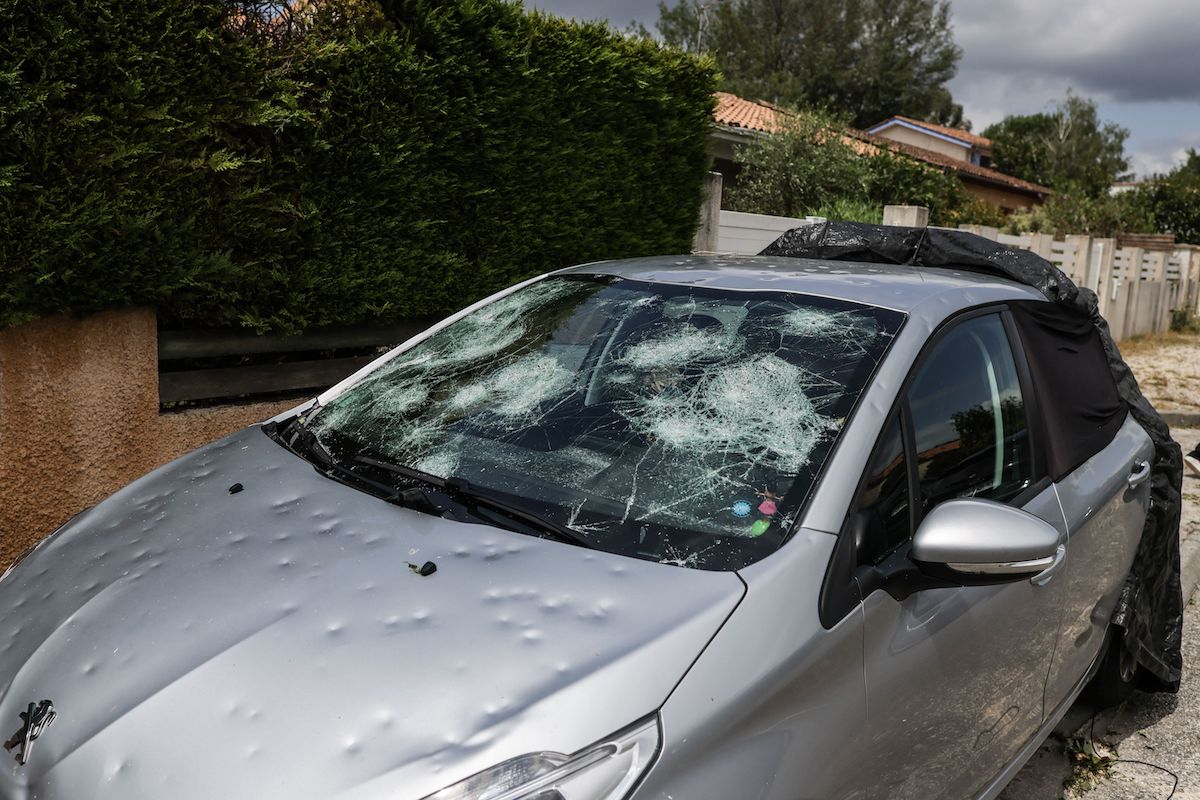 But before you get going, step outside your vehicle and assess any damage the hail caused. If you have a flat tire or broken window, call for roadside assistance instead of trying to drive home.