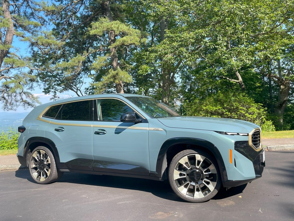 The 2023 XM rides on massive 23-inch alloy wheels that can be finished in gold. Our model had mixed-perf tires. For BMW, mixed means staggered, so the tires in the rear are wider than the ones in the front.