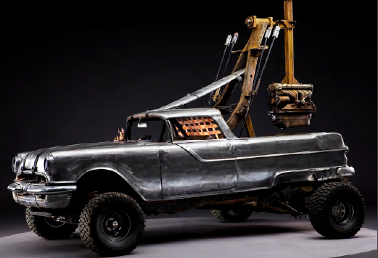 Mated to twin-V8 engines are the mangled hulks of two 1959 Cadillac Coupe de Villes. This was the lead vehicle of the Citadel’s gang of vehicles. It’s “likely the first thing you hear and the last thing you see on the Fury Road.