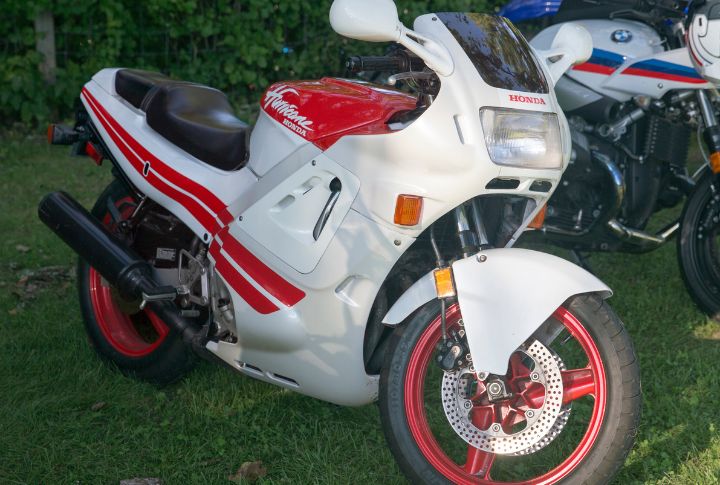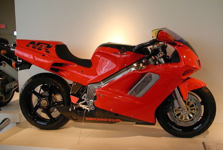 The Honda NR-750 is the endurance racer version of the Honda NR, first released in 1979. After a remarkable success in the 1960s Grand Prix racing, Honda was absent for a while and wanted to develop a four-stroke machine to compete with the dominating two-stroke ones. At the time of its release, it was one of the most expensive bikes on the market, selling for about $50,000.