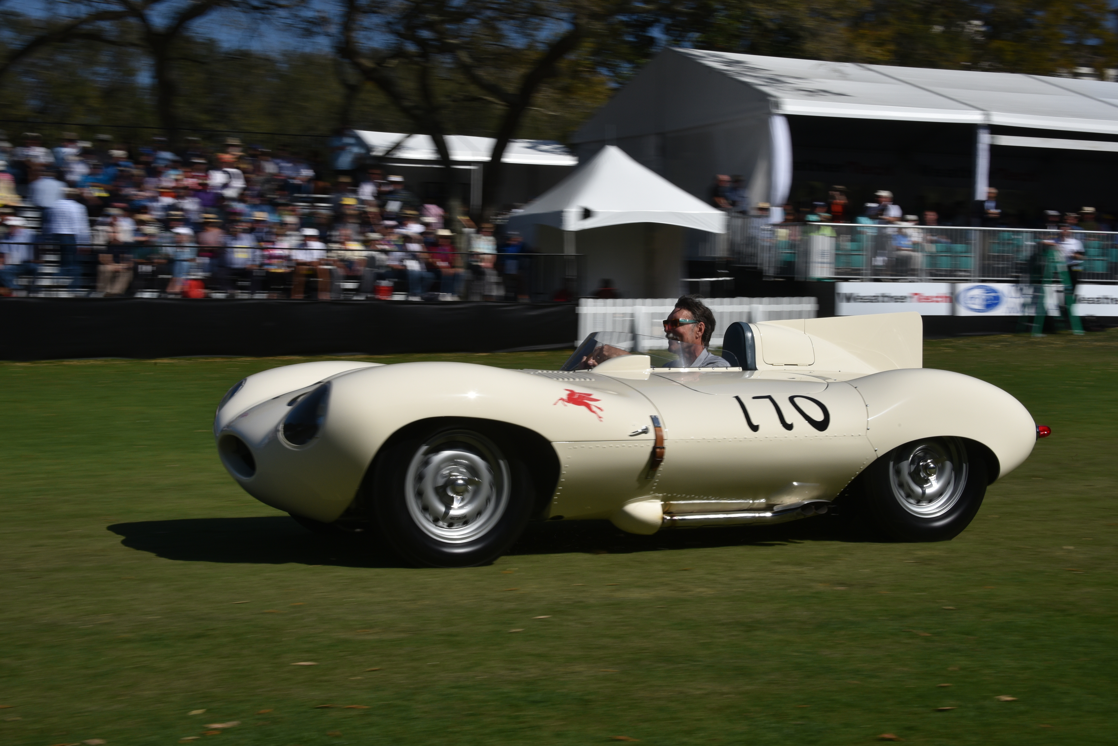 An attendee drives in a 1956 Jaguar D-Type XKD | Mark Elias, Bloomberg, Getty Images