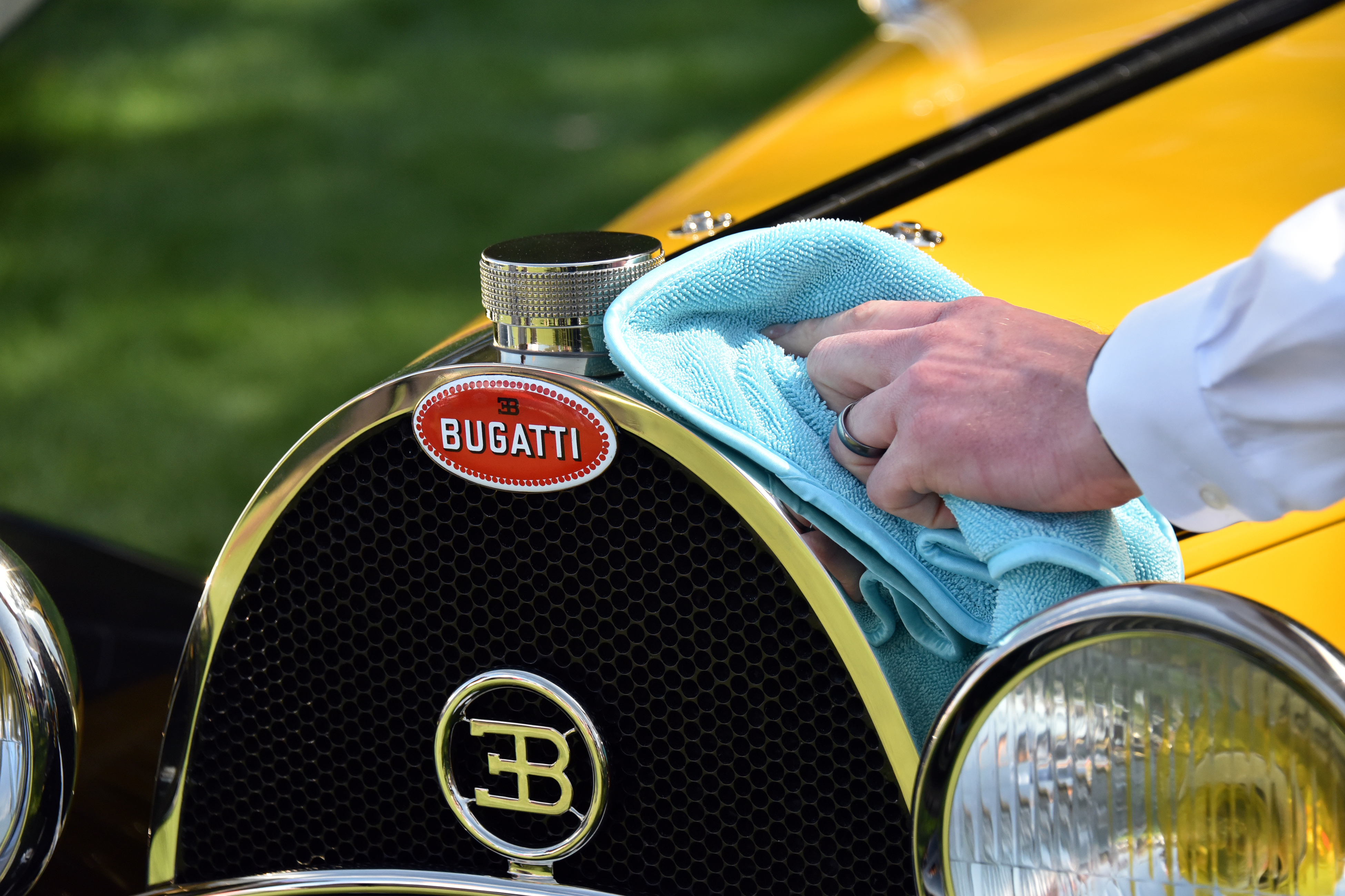 A worker wipes a 1932 Bugatti Automobiles SAS Type 55 Roadster | Mark Elias, Bloomberg, Getty Images