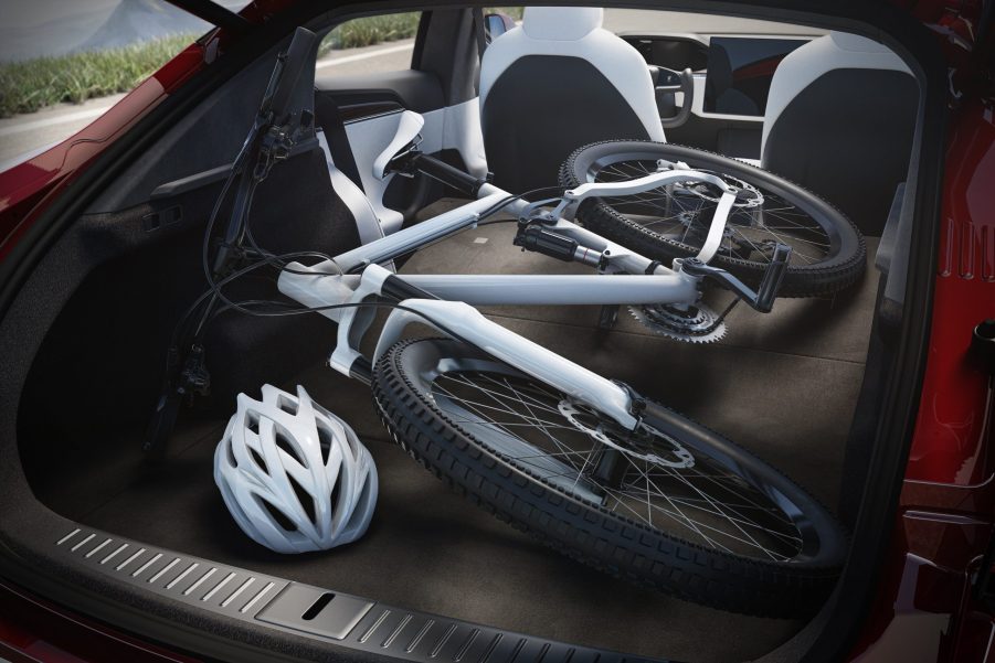 Let’s start with the winner. Of all the electric cars I combed through (sans the Rivian R1T and other big EV SUVs), the Tesla Model S is the one that came out on top. Tesla isn’t just winning at the drag strip. The Model S packs an impressive 30 cubic feet of cargo space. You can fold down the seats in your $94,000 electric car and fit any number of things in the back. Like this bike. Or your new Legos. I’m not your mom.