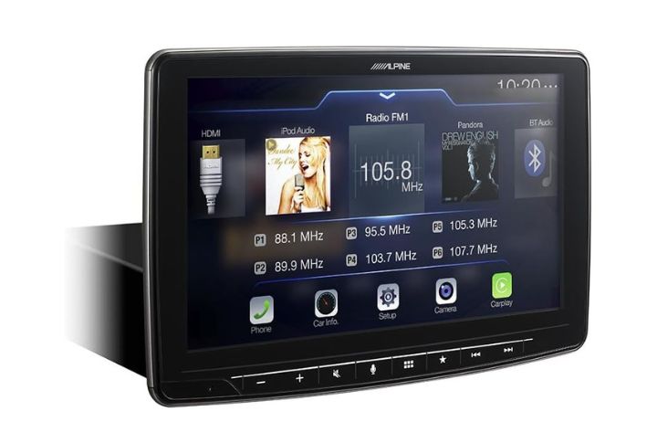 Can your dashboard handle a big screen? Alpine iLX-F309 HALO9 has a stunning 9-inch floating screen with a modern 1-DIN unit adaptable for different drivers. It supports Apple CarPlay, Android Auto, and Siri voice controls and has excellent sound quality and easy-to-use software. The only significant drawbacks are the low resolution, CD player, and price tag.