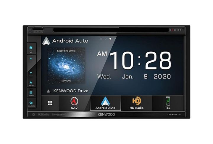 The Kenwood DDX9703S is a versatile 2-DIN head unit with easily accessible hardware buttons. Its 6.95-inch adjustable screen has seven motorized settings to get the best view. Although the reflective screen and sluggish interface need more work, it covers all your connectivity needs with Android Auto, Apple CarPlay, Siri Voice Control, Bluetooth, and a CD/DVD player.