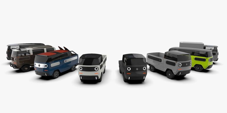 First, it’s modular, so it comes in 10 different body configurations. Everything from a pickup to flatbed and even a cargo van version are available. It also comes as either an urban version or an off-road configuration. Also, because of drive-by-wire technology and modularity, it can be driven from the left, right, or center of the front seat. Everything just slides and locks into place. Since there is no mechanical link connecting them with anything it makes this transformation easy. It even features four-wheel steering.