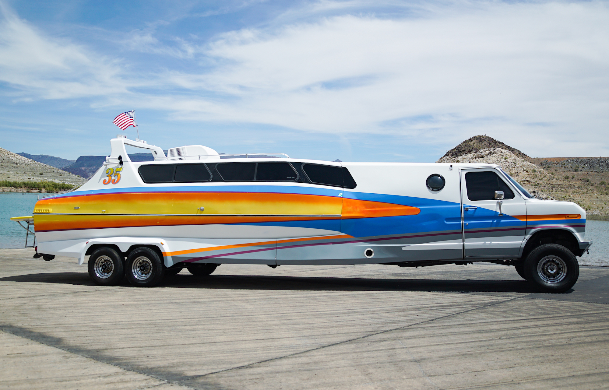 The most popular Boaterhome is a supersized RV/speedboat combination. It might look absurd, but it’s the peanut butter and jelly of camping and boating. It’s a must-see if you haven’t yet witnessed this insanely over-the-top vehicle.
