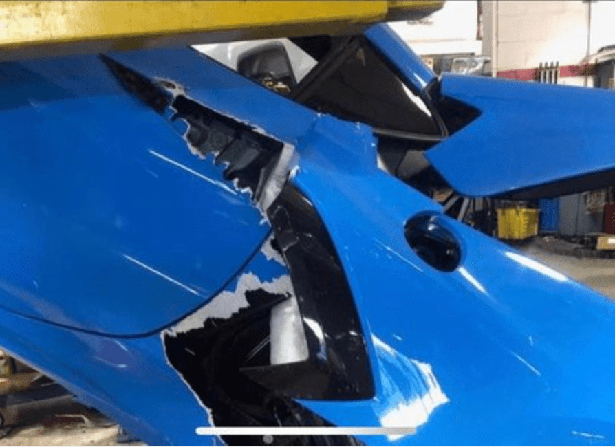 By looking at the damage on this 2021 Chevrolet Corvette, we’d assume its destroyed fate is sealed. From the second image posted above, we clearly see extensive damage to the car’s door and rear quarter panel. However, there is likely plenty of damage we cannot see to the car’s frame and powertrain. Since the lift’s posts likely dug into the car, this sports car is likely totaled.