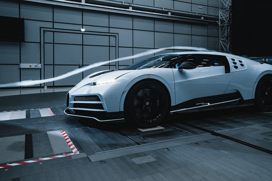 Despite the fact that Bugatti is only going to produce ten examples of the Centodieci, they are still running the car through a full battery of tests that any other mass-production car from their brand would endure. That includes on-track testing at high speeds and laboratory testing such as putting the Centodieci in a giant wind tunnel to test its aerodynamic effectiveness.